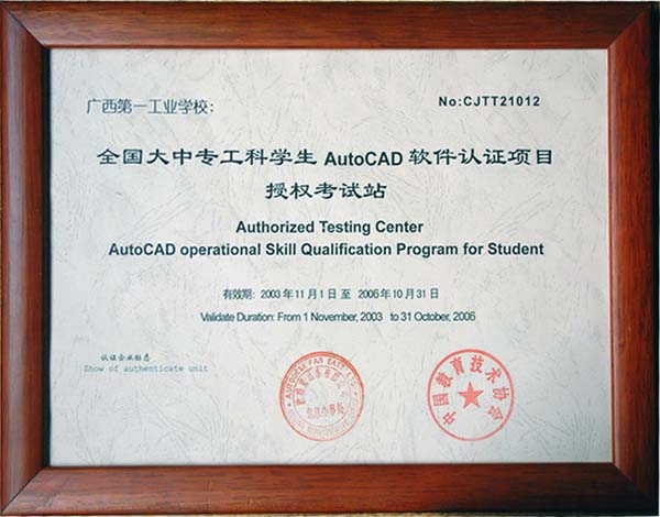 全國(guó)大中專工科學(xué)生學(xué)生AutoCAD軟件認(rèn)證項(xiàng)目授權(quán)考試站