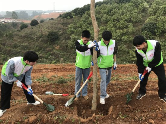 學(xué)校團(tuán)員、青年代表在植樹活動(dòng)現(xiàn)場(chǎng)合影