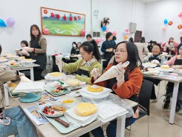 在蛋糕師的耐心指導(dǎo)下,女職工認(rèn)真專注地設(shè)計(jì)裱花的圖案,并用靈巧的雙手創(chuàng)作出一款款精致獨(dú)特的蛋糕,廚藝出眾的女職工紛紛化身西點(diǎn)大師展身手,在完成自己的蛋糕作品之余還指導(dǎo)其他女職工完成制作,活動(dòng)現(xiàn)場充滿了歡聲笑語。