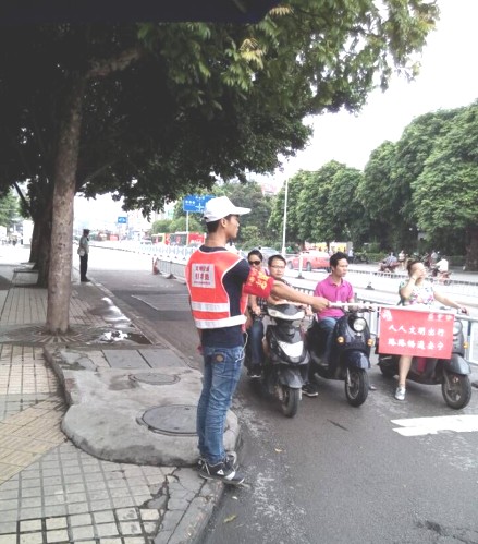 志愿者們分為2個班次,每天早上7:30——9:00,下午17:30——19:00,分別在人民朝陽路口、民族朝陽路口、中華友愛路口、人民友愛路口進行交通文明勸導,聽從交警指揮,做到紅燈伸手制止、綠燈放手同行。