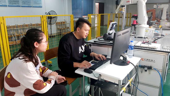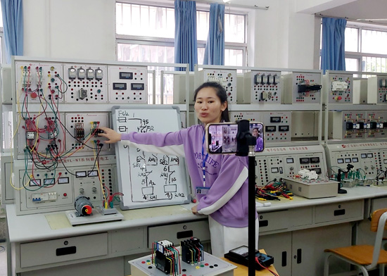老師在實(shí)訓(xùn)室進(jìn)行線上教學(xué)