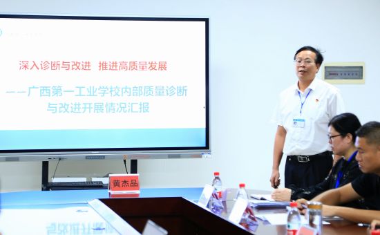 隨后,專家組聽取了廣西一工校學(xué)校層面、專業(yè)層面診改工作匯報(bào),了解學(xué)校教學(xué)診改方案實(shí)施、教學(xué)質(zhì)量診斷與改進(jìn)等推進(jìn)情況。