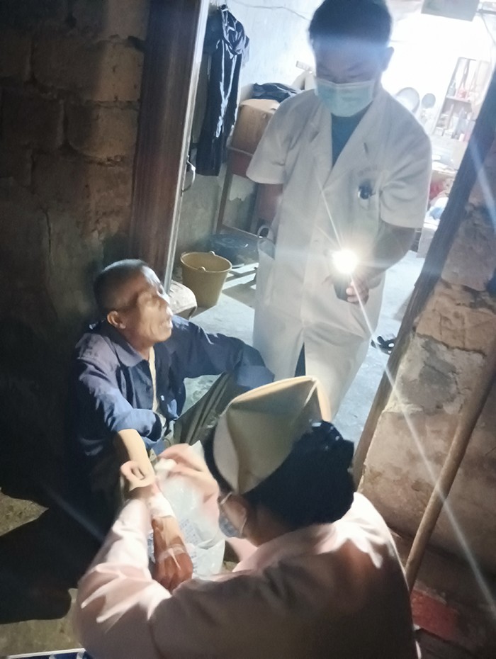 歐陽遠洲了解到該脫貧戶有急性病的病史,又是孤寡老人時,感到事態(tài)緊急,立馬起床撥打120,將脫貧戶廖建佳的病史、突發(fā)情況原因、家庭位置告訴了醫(yī)院,同時也顧不上整理儀容,穿著球服就快速出發(fā)趕到廖建佳家。當看到廖建佳喘氣吃力,歐陽書記又采取了簡易的醫(yī)療手法幫助其順暢呼吸。不久后,醫(yī)生也來到了現場,歐陽書記在協(xié)助醫(yī)生做好安全措施,救護老人脫離生命危險后,主動將廖建佳背到救護車上,連夜送往鐘山縣人民醫(yī)院治療。