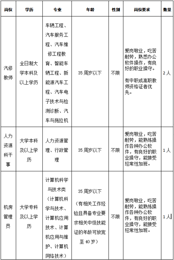 汽修專業(yè)教師2名;